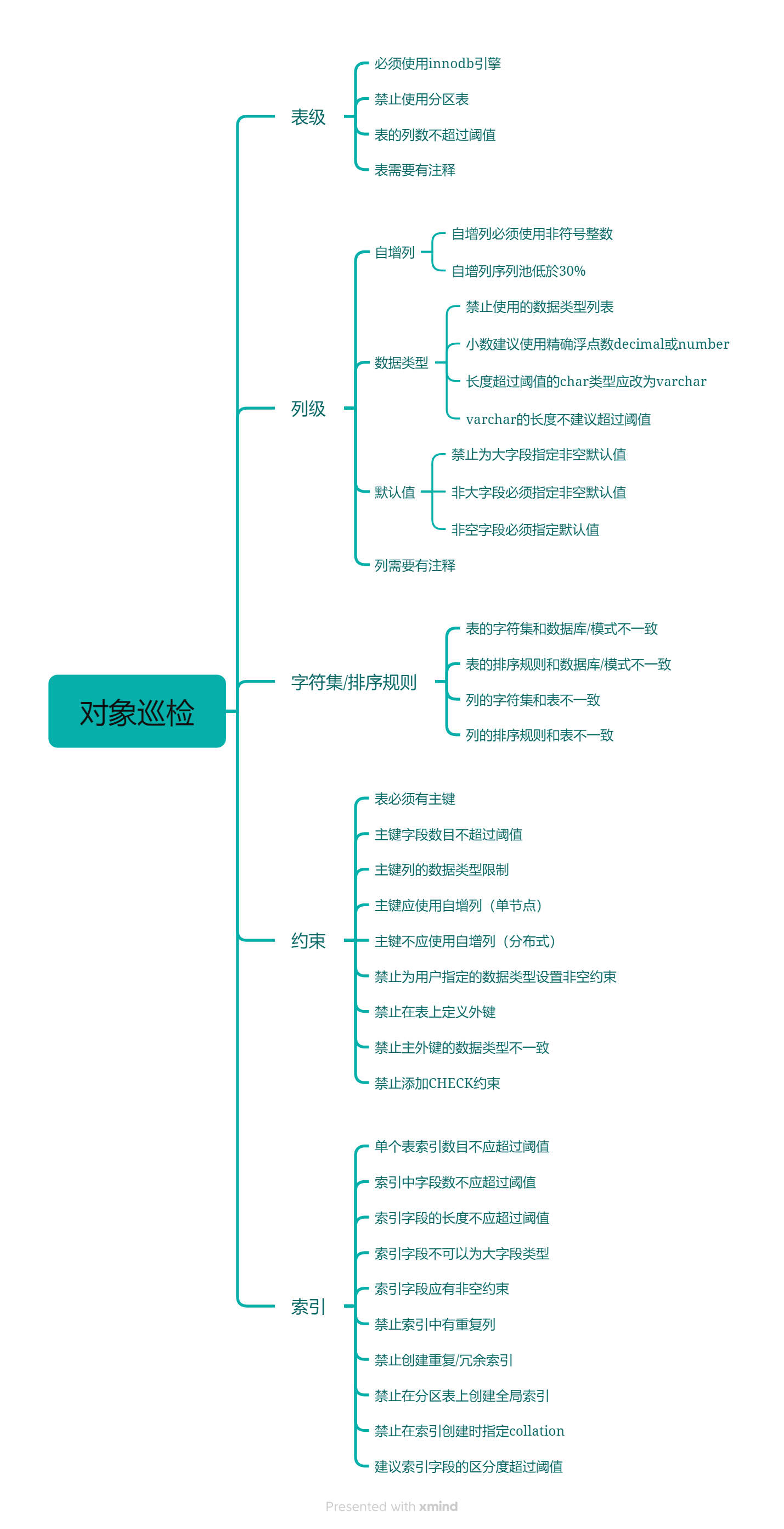 数据库对象巡检指的是定期或即时得对数据库中的对象进行巡检,识别可能的性能、安全性、可维护性等问题隐患,并提供优化建议。