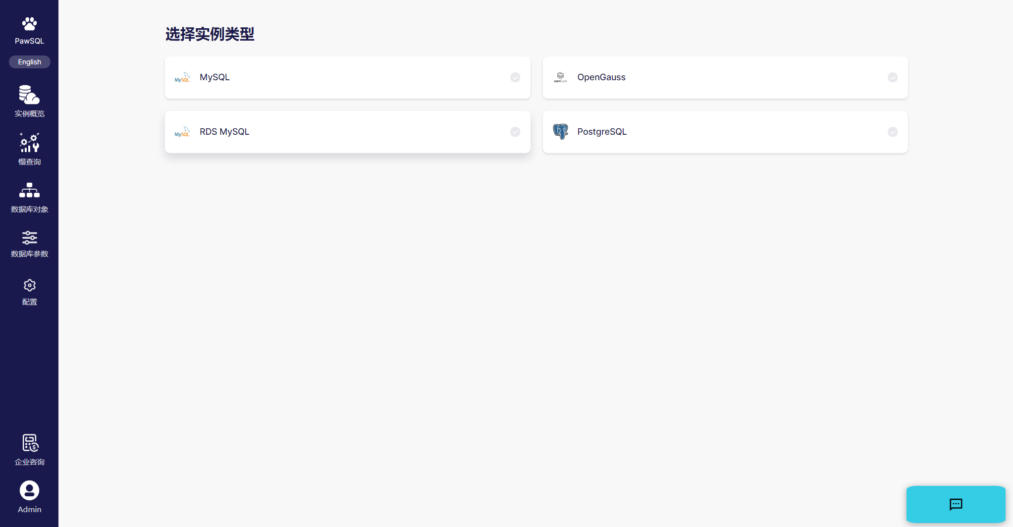 在输入数据库连接信息时,需要能够保证PawSQL性能巡检平台能够通过输入的连接信息访问对应的数据库;这 一步可能需要将PawSQL性能巡检平台部署的服务器加入到被访问数据库的入访白名单中。