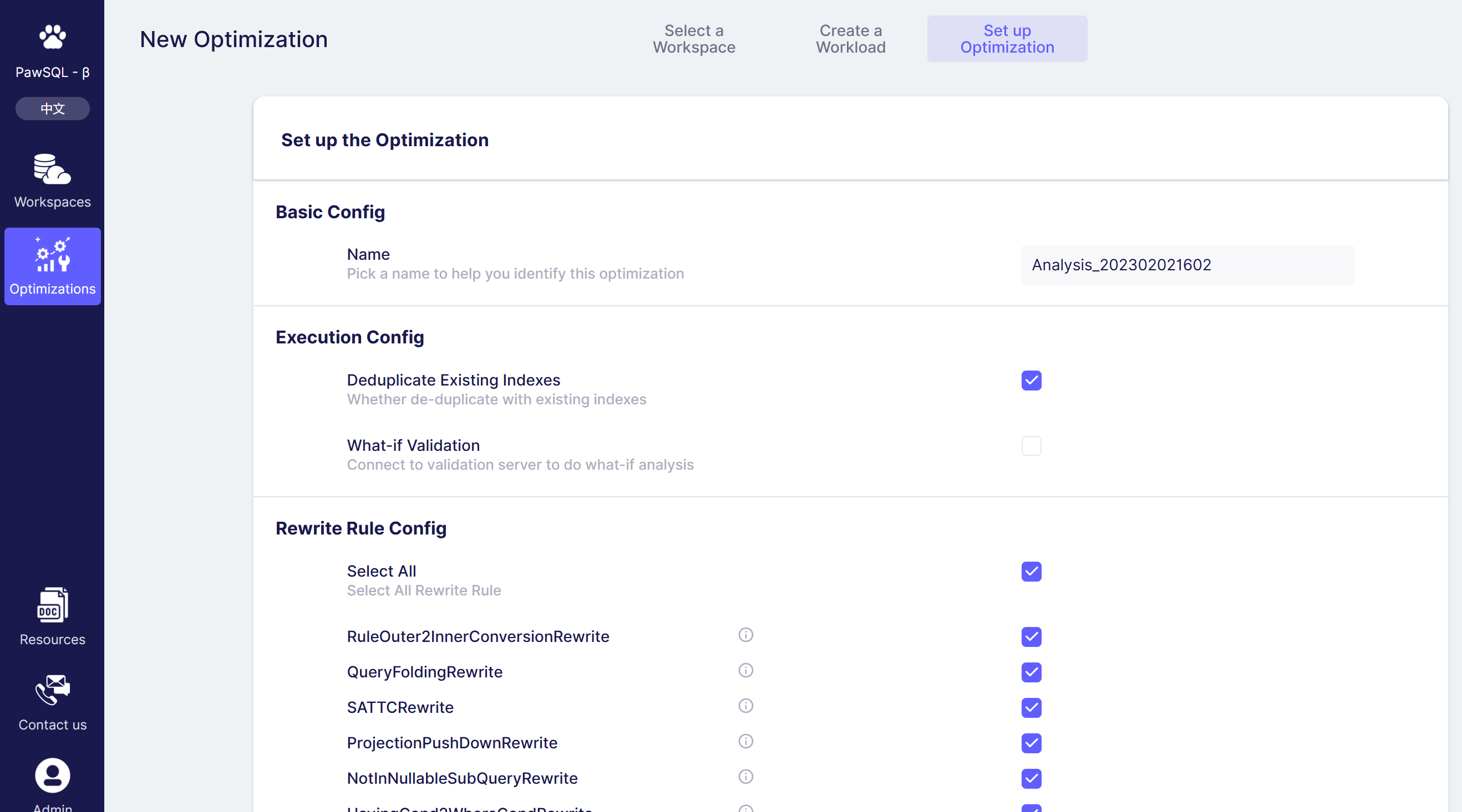 - Perform What-if Verification: Whether to connect to a verification server to validate the performance of the optimization results.