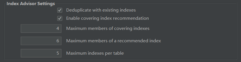 - Recommend Covering Indexes: Whether to recommend covering indexes that can satisfy queries purely from the index without accessing the table. Can significantly improve performance but also increase index size by including non-query columns.