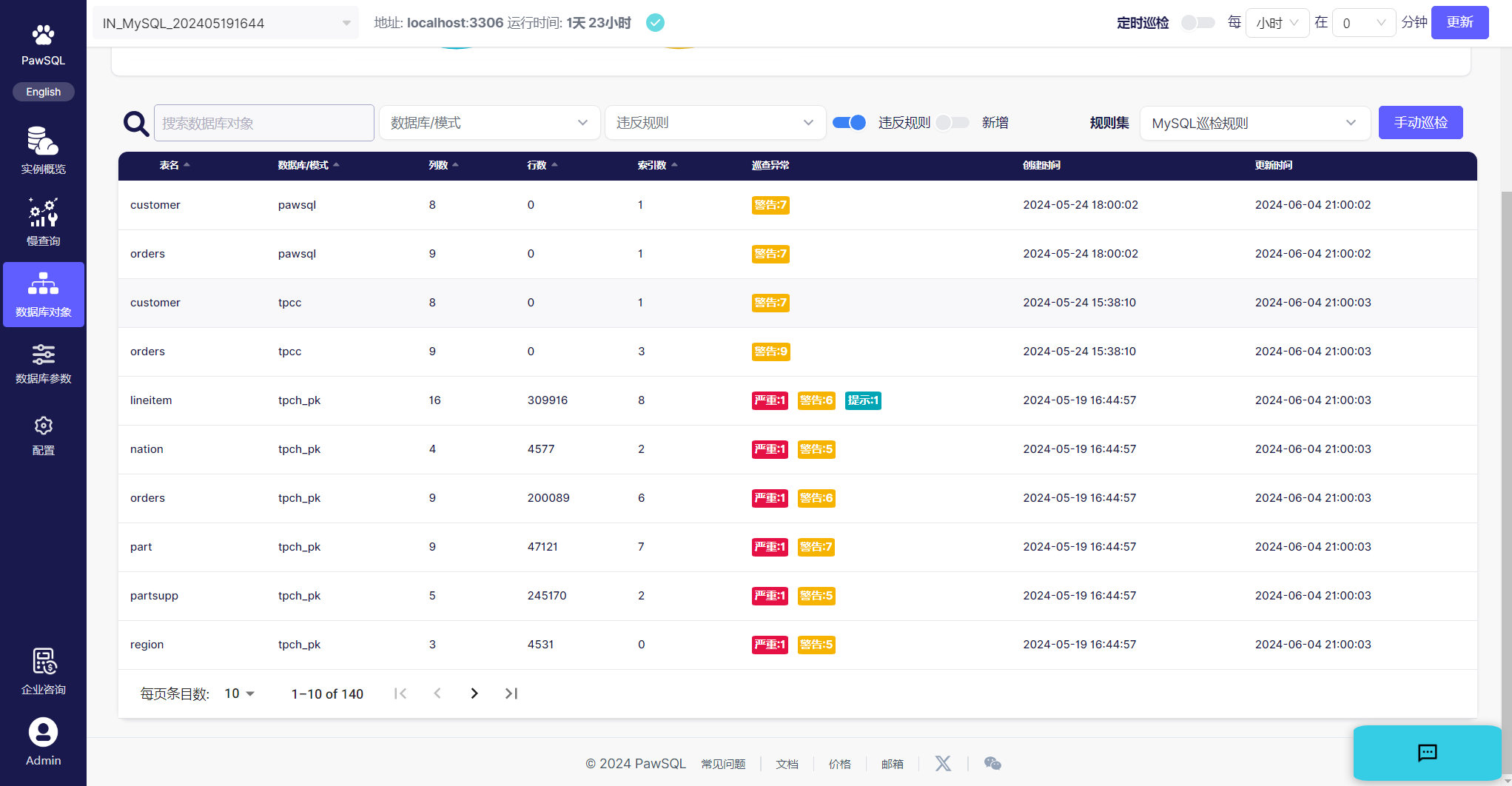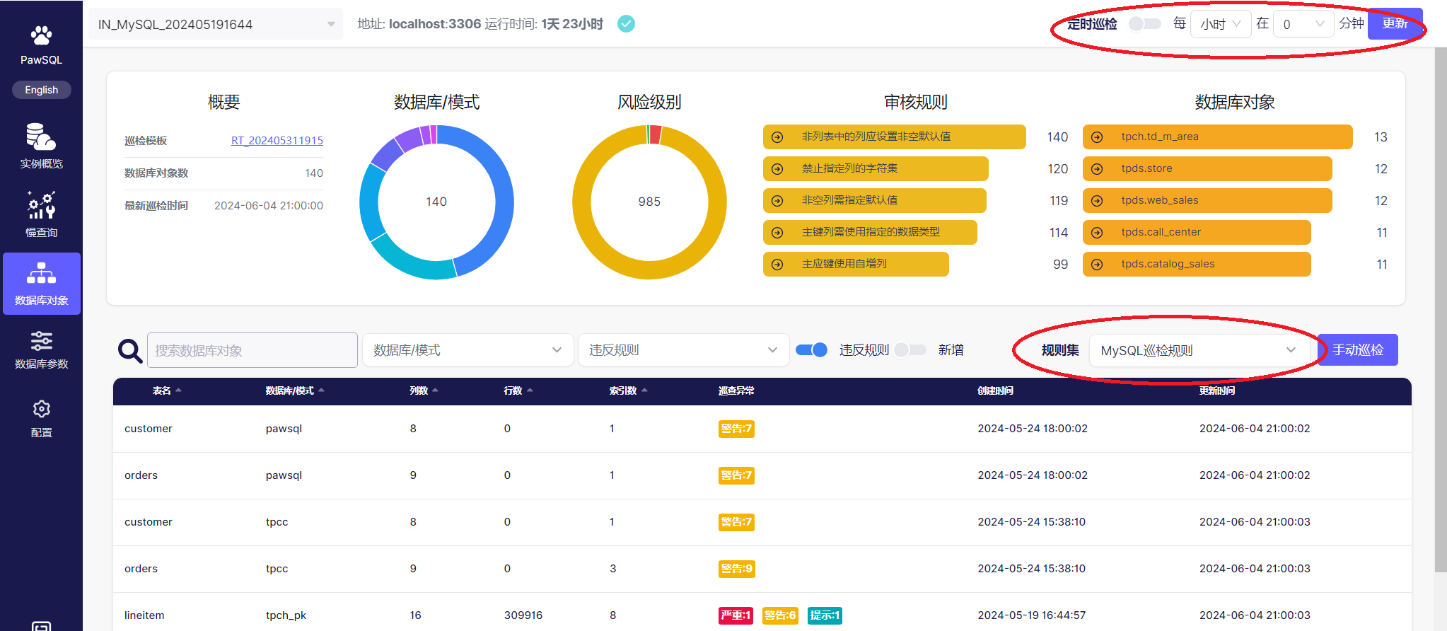 Users can define scheduled patrol tasks when adding an instance, or they can modify scheduled patrol tasks later on the patrol page or perform patrols manually. When defining patrol tasks, users need to specify a pre-defined patrol rule template.